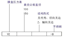 儀表由測(cè)量系統(tǒng)(包括接頭、膜盒等)、傳動(dòng)機(jī)構(gòu)、指示裝置和外殼組成。導(dǎo)壓系統(tǒng)及外殼均用不銹鋼材料制成,采用密封型結(jié)構(gòu),防止污穢物侵入。