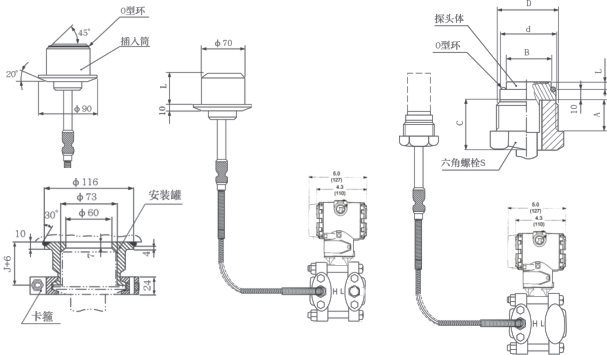 為了適應(yīng)不同的安裝需求,本系列變送器具有多種形式的遠(yuǎn)傳裝置供用戶選擇,變送器的主體結(jié)構(gòu)與壓力變送器相同。